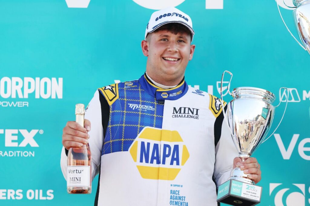 He told the Vertu Motors Mini Challenge website that, “It was a tricky one, as our pace was good over a lap. But the overall pace wasn’t quite as good. We couldn’t keep up when the tyres dropped off, but we’ve scored good points again, which is important.”